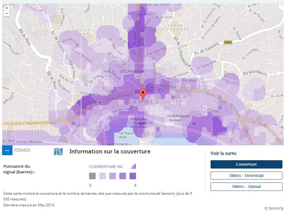 Avec les données de notre partenaire Sensorly Univers Freebox vous propose un focus sur Cannes 66ème ville de France par sa population et vous fait découvrir la carte de la couverture du réseau 4G et des débits.