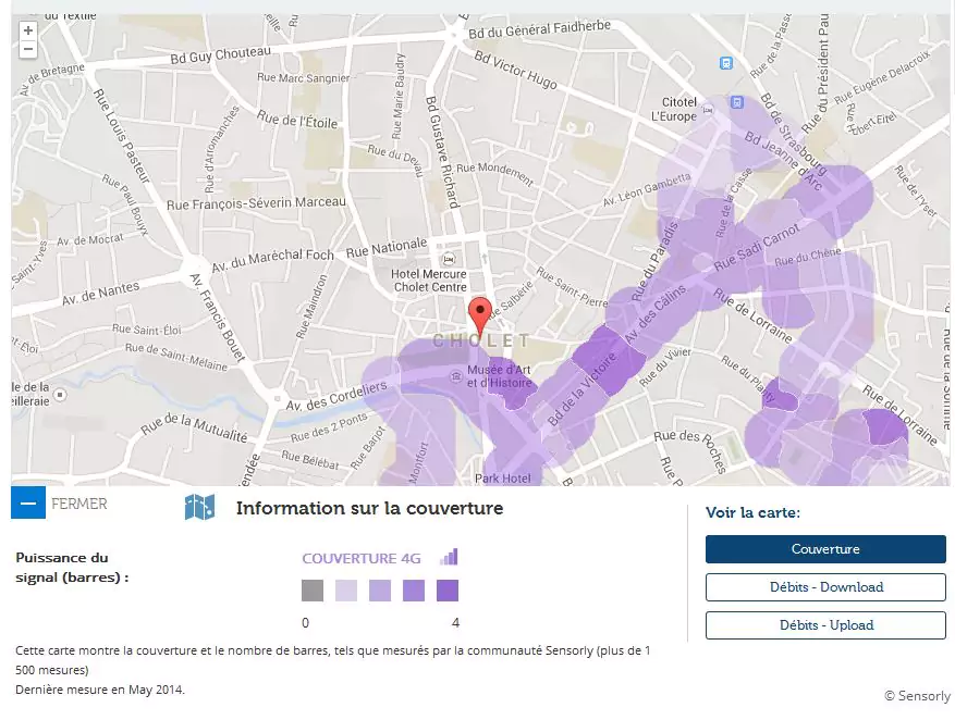Cholet 101ème ville de France par sa population et vous fait découvrir la carte de la couverture du réseau 4G et des débits.
