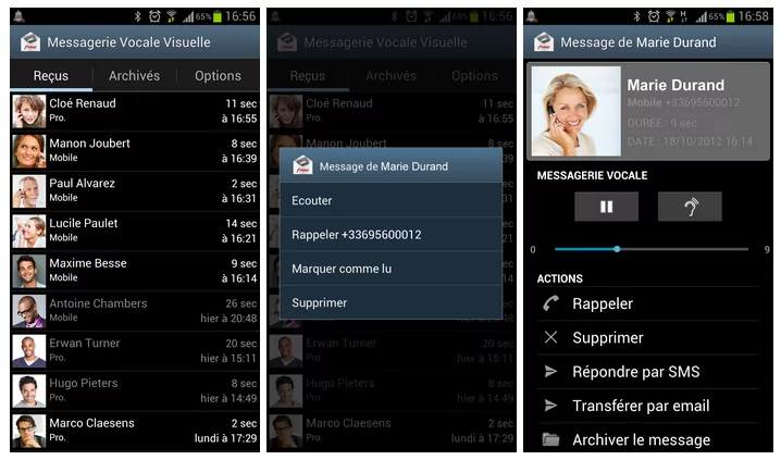 Pour mettre à jour ou télécharger l’application Messagerie Vocale Visuelle, rendez vous sur Google Play.