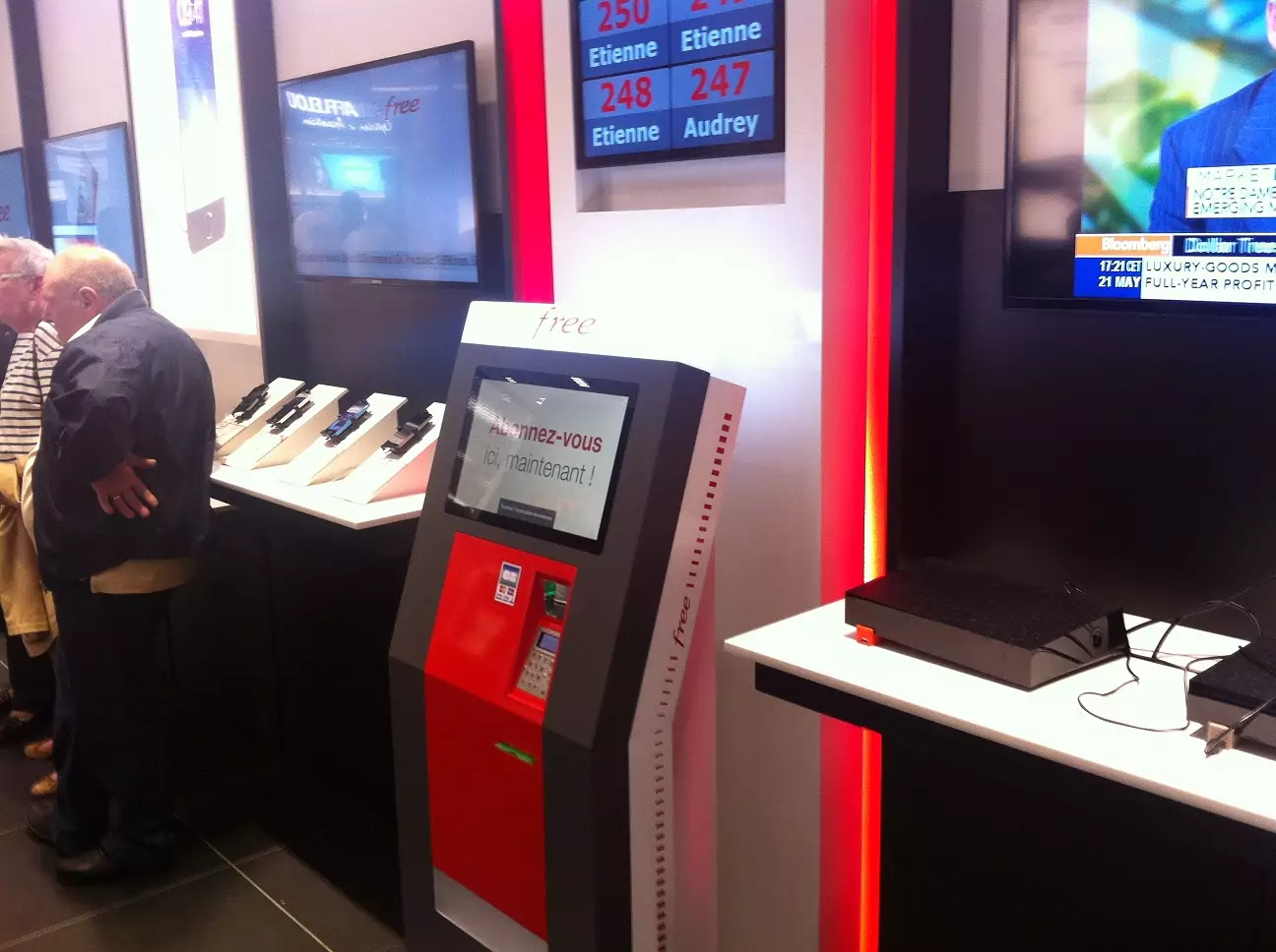 Si le déploiement des bornes interactives de Free Mobile était limité aux « Maisons de la Presse » et aux « Mag Press », ce n’est désormais plus le cas. Les bornes Free sont progressivement installées dans les Free Center, alors que le déploiement dans ces espaces 100% Free était initialement prévu pour 2015.