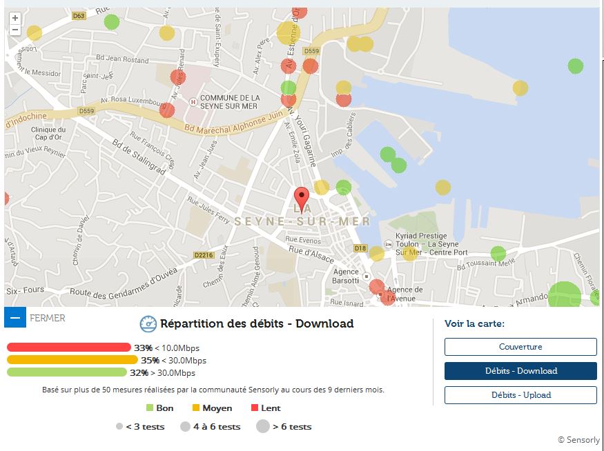 Avec les données de notre partenaire Sensorly Univers Freebox vous propose un focus sur La Seyne sur Mer 80 ème ville de France par sa population et vous fait découvrir la carte de la couverture du réseau 4G et des débits.