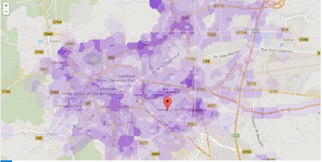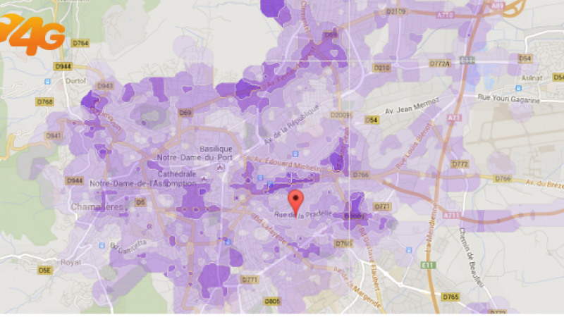 Du côté de Clermont-Ferrand, la ville est, dans l’ensemble, bien couverte en 4G. Avec plus de 100 000 mesures, des traces de couvertures de la 4G Free Mobile, vont jusqu’à Beaumont, Durtol, Cébazat et Pont-du-Château.