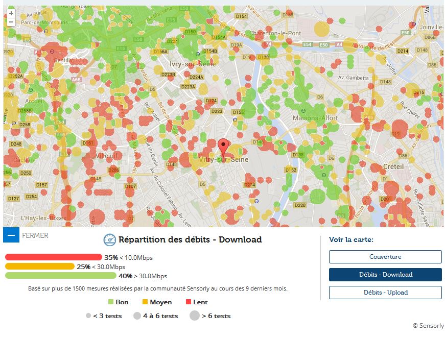 Avec les données de notre partenaire Sensorly Univers Freebox vous propose un focus sur Vitry sur Seine 51ème ville de France par sa population et vous fait découvrir la carte de la couverture du réseau 4G et des débits.