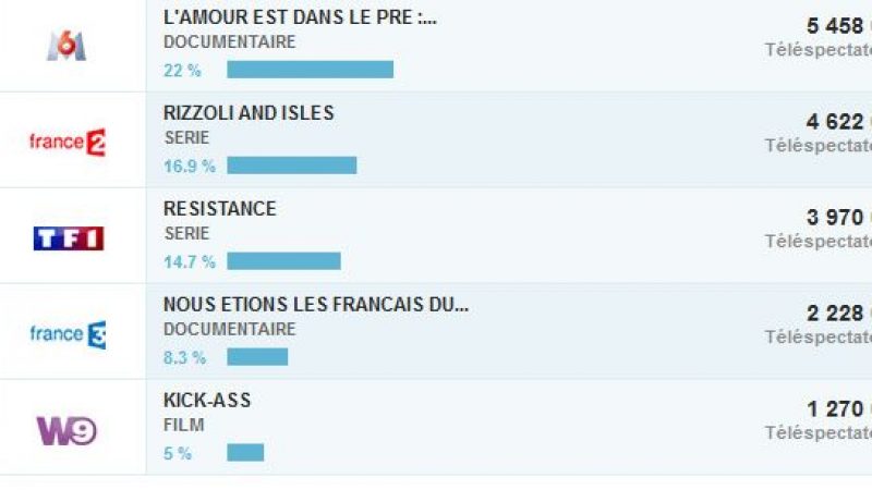 Avec sa série "Résistance" TF1 n’arrive qu’à la troisième place derrière France2