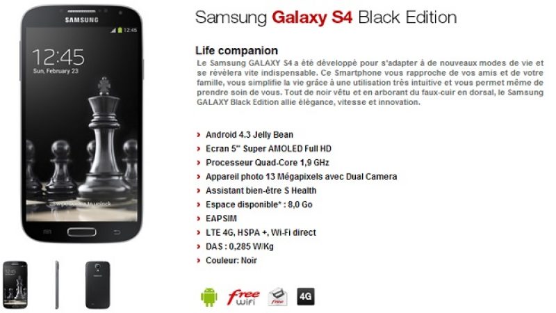 Le Samsung Galaxy S4 Black Edition arrive chez Free Mobile