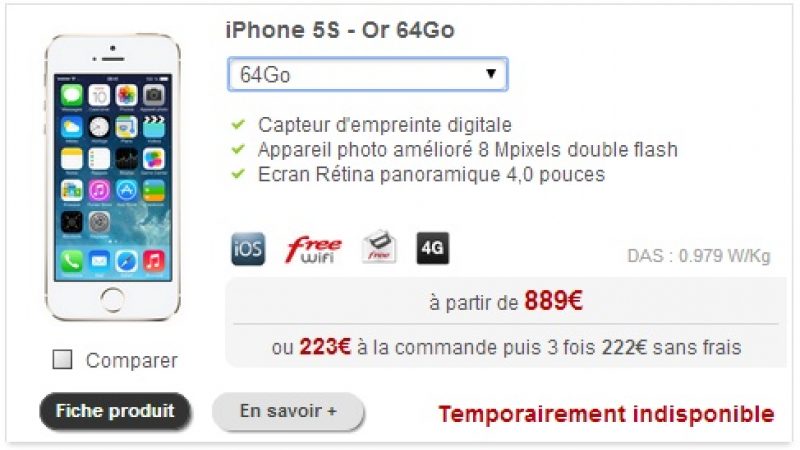 Si l’ensemble des marques sont accessibles, du côté de l’iPhone 5S, seule la version "or" 64 Go manque à l’appel.