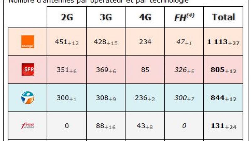 (4) FH (faisceau hertzien) : Système de transmission entre les antennes relais. N’est jamais directement capté par un mobile. (chiffre non comptabilisé dans le total des antennes).