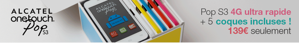 Un nouveau terminal fait son apparition sur la plateforme de vente en ligne Free Mobile. Il s’agit du Alcatel One Touch Pop S3. Vendu 139 €, il s’agit du téléphone 4G le moins cher du moment sur la plateforme. Si de nombreux téléphones 4G ne sont que de catégorie 3 et sont plafonnés à 100 Mbits en réception, celui-ci malgré son bas prix peut atteindre théoriquement les 150 Mbits.