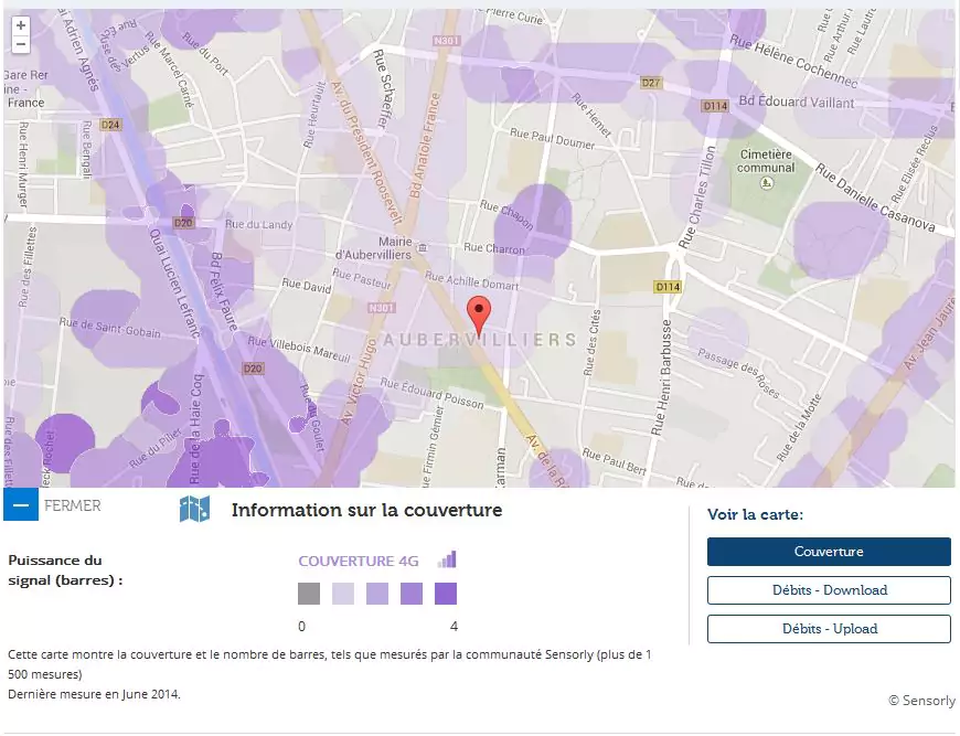 Avec les données de notre partenaire Sensorly Univers Freebox vous propose un focus surAubervilliers 60ème ville de France par sa population et vous fait découvrir la carte de la couverture du réseau 4G et des débits.