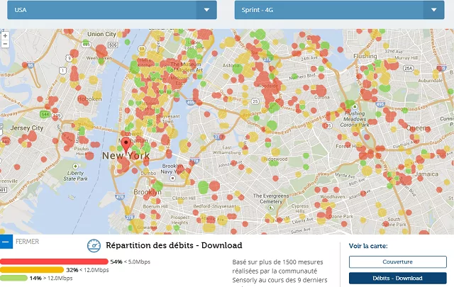 Cependant, et d’après les membres de l’équipe Sensorly, le meilleur débit relevé via l’application a été mesuré en France. Cocorico !