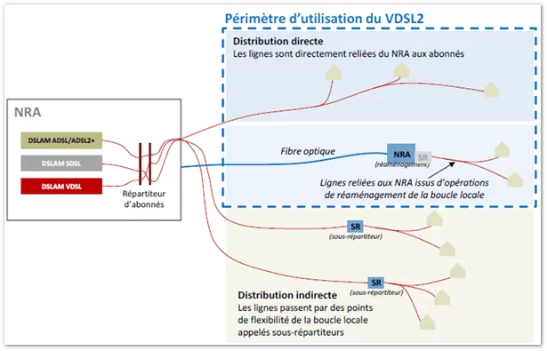 Actuellement, l’introduction du VDSL2 a été limitée aux lignes en distribution directe par l’ARCEP (la ligne de cuivre part du NRA jusqu’à l’abonné sans passer par un sous-répartiteur) ainsi qu’aux lignes des NRA (mis en service avant le 1er janvier 2005) issus d’un réaménagement de réseau. A ce jour, « 30% des abonnés Free » en profitent nous confie l’opérateur.