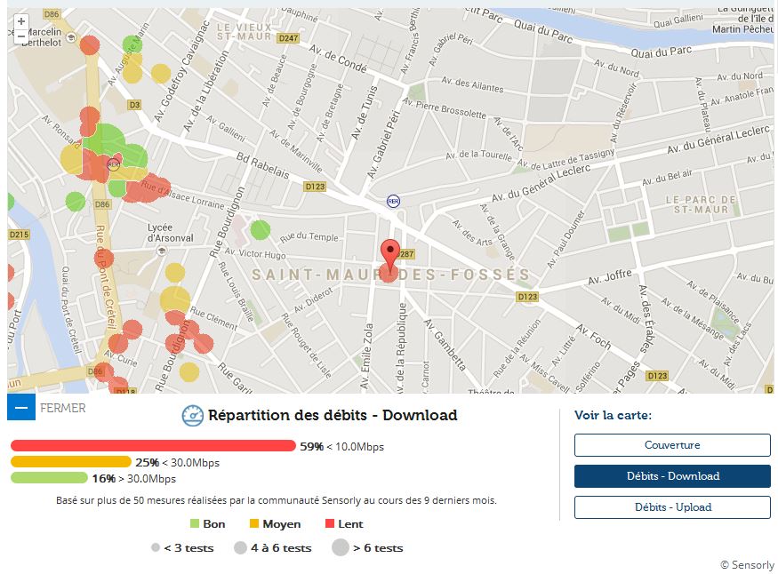 Avec les données de notre partenaire SensorlyUnivers Freebox vous propose un focus sur Saint-Maur-des-Fossés 63ème ville de France par sa population et vous fait découvrir la carte de la couverture du réseau 4G et des débits.