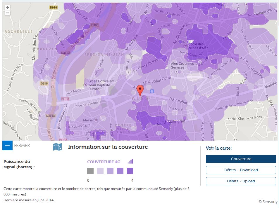 Avec les données de notre partenaire Sensorly Univers Freebox vous propose un focus sur Alès 172ème ville de France par sa population et vous fait découvrir la carte de la couverture du réseau 4G et des débits.