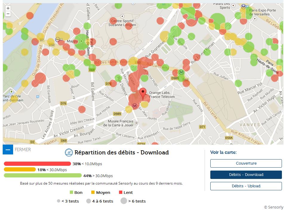 Avec les données de notre partenaire Sensorly Univers Freebox vous propose un focus sur Issy les Moulineaux 74ème ville de France par sa population et vous fait découvrir la carte de la couverture du réseau 4G et des débits.