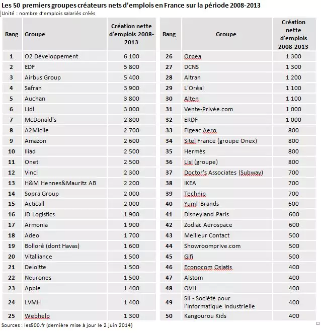 Ce dernier explique ainsi que ce ne sont pas forcément les grands groupes du CAC 40 qui créent le plus d’emplois, mais les entreprises intermédiaires (moins de 5000 employés). Olivier Passet donne également le classement des 10 premières entreprises les plus créatrices d’emplois. Et parmi celles-ci, on retrouve Iliad à la 10ème place