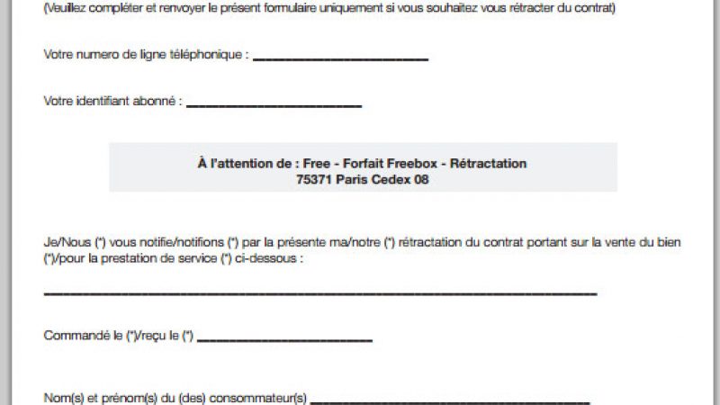 Autre nouveauté, toujours concernant la rétractation, Free a ajouté un bon de rétractation directement dans ses CGV, avec l’adresse où envoyer le courrier. Cela devrait faciliter les démarches des personnes concernées.