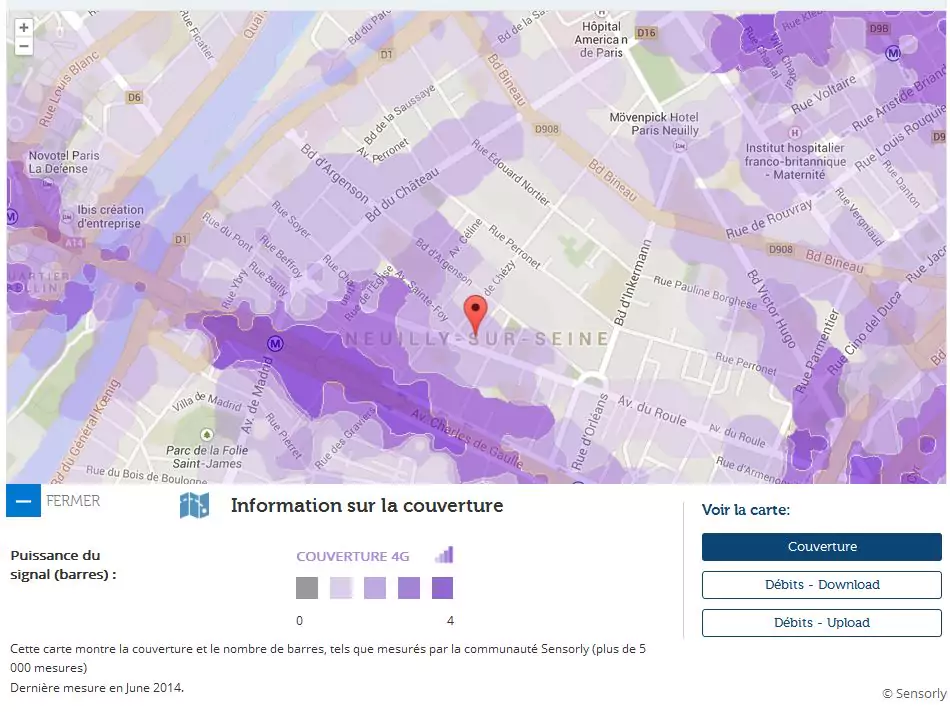 Avec les données de notre partenaire Sensorly Univers Freebox vous propose un focus sur Neuilly Sur Seine 82ème ville de France par sa population et vous fait découvrir la carte de la couverture du réseau 4G et des débits.