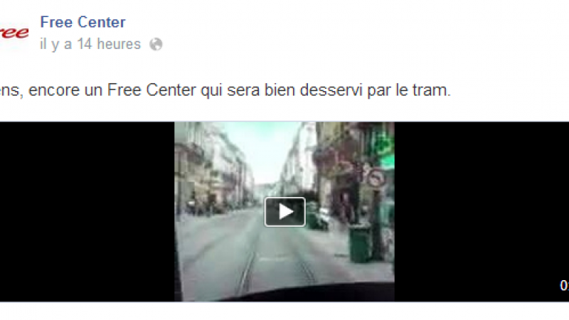 Sur la première publication, c’est une vidéo qui est publiée accompagnée du commentaire "tiens, encore un Free Center qui sera bien desservi par le tram." Cette vidéo a été prise à l’intérieur du tram en question.