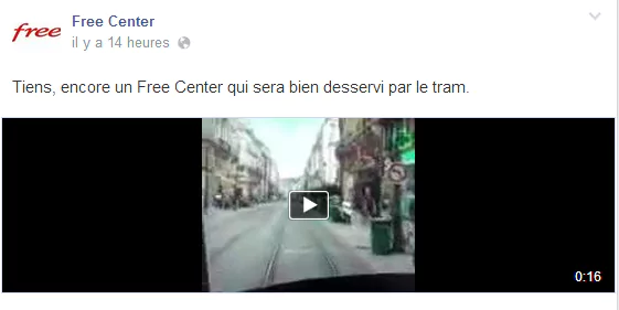 Sur la première publication, c’est une vidéo qui est publiée accompagnée du commentaire "tiens, encore un Free Center qui sera bien desservi par le tram." Cette vidéo a été prise à l’intérieur du tram en question.