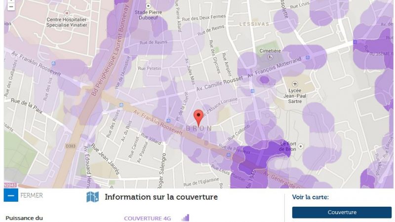 Avec les données de notre partenaire Sensorly Univers Freebox vous propose un focus Bron 187ème ville de France par sa population et vous fait découvrir la carte de la couverture du réseau 4G et des débits.