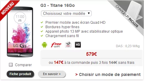 Il est vendu au tarif de 579 € à la commande ou 147 € à la commande et 144 € par mois pendant 3 mois.