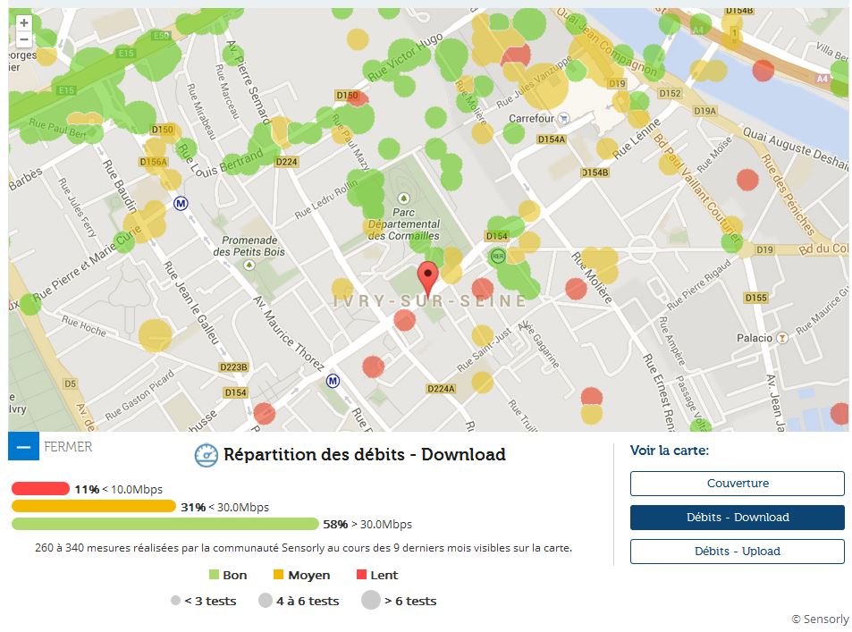 Avec les données de notre partenaire Sensorly Univers Freebox vous propose un focus Yvri sur Seine 91ème ville de France par sa population et vous fait découvrir la carte de la couverture du réseau 4G et des débits.