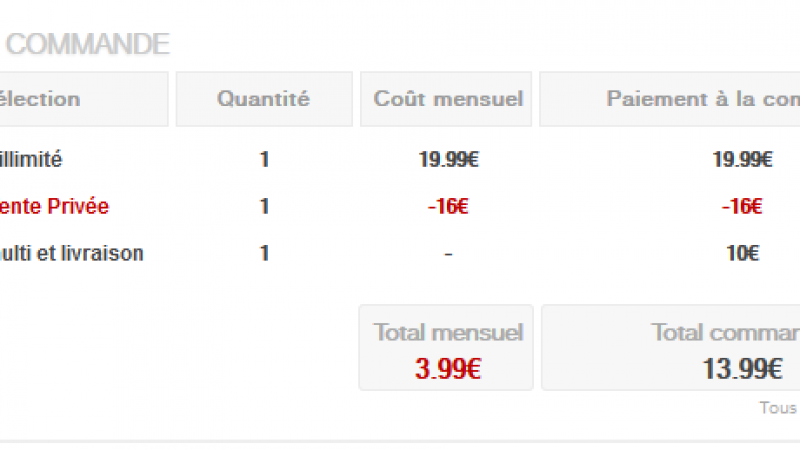 Les abonnés qui se sont inscrits à cette offre Vente Privée ont également bénéficié d’une deuxième réduction, qui n’était pas prévue au départ. En effet, la carte SIM, qui était facturée 10 euros, a finalement été offerte.