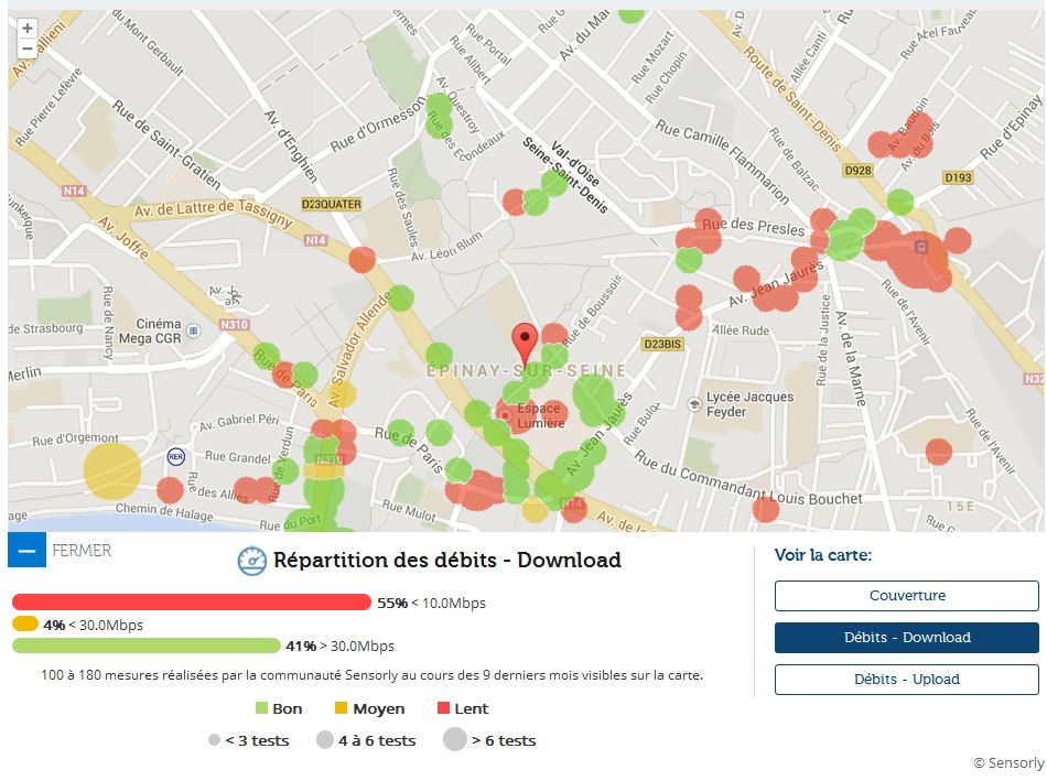 Avec les données de notre partenaire Sensorly Univers Freebox vous propose un focus sur Epinay-sur-Seine 99ème ville de France par sa population et vous fait découvrir la carte de la couverture du réseau 4G et des débits.