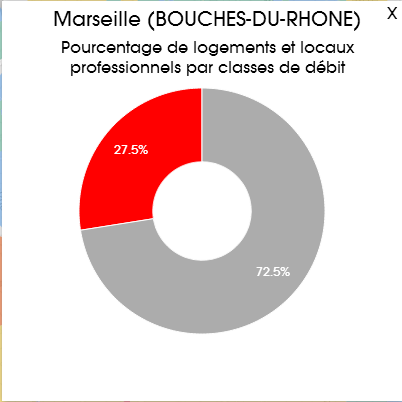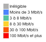 Il est ainsi possible d’afficher différents niveaux de zoom, du quartier au département, de filtrer la technologie recherchée. les résultats sont présentés en 6 tranches de "inéligible" à "100 Mbits et plus".