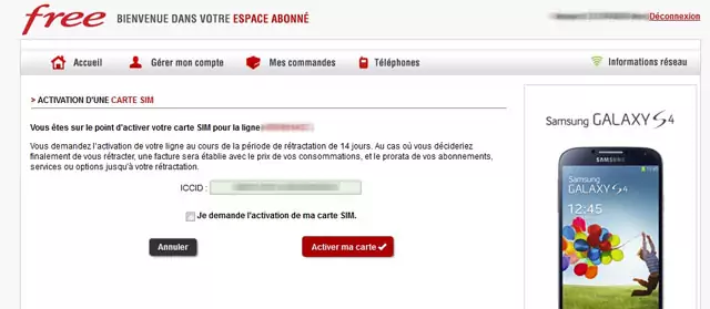 Free a modifié la page d’activation de la carte SIM disponible sur l’espace abonné Free Mobile. Outre l’aspect qui a évolué, un message est maintenant adressé aux abonnés qui activent leur carte SIM : « Vous demandez l’activation de votre ligne au cours de la période de rétractation de 14 jours. Au cas où vous décideriez finalement de vous rétracter, une facture sera établie avec le prix de vos consommations, et le prorata de vos abonnements, services ou options jusqu’à votre rétractation ».