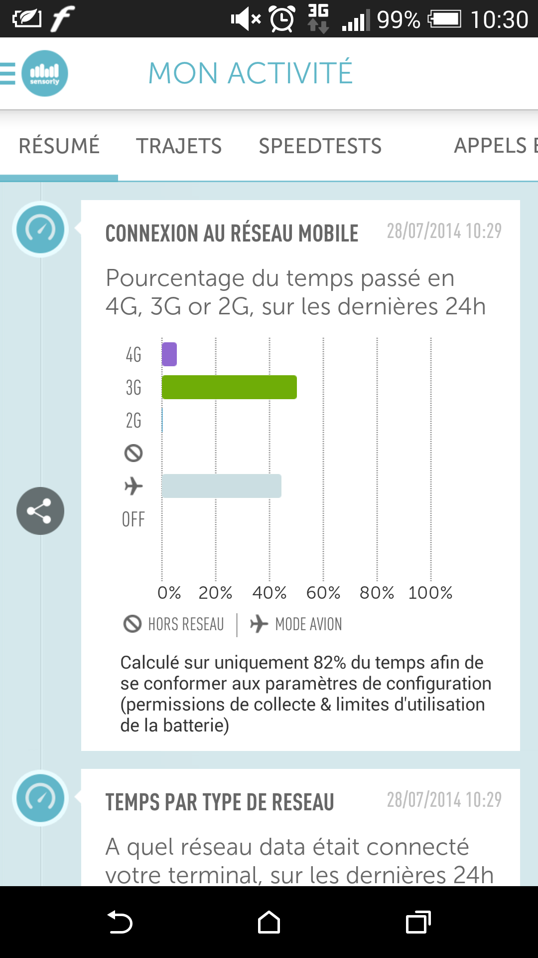 Une nouvelle mise à jour de Sensorly est disponible sur Google Play vous permettant de bénéficier, toujours gratuitement, de la mesure du temps passé par réseau.