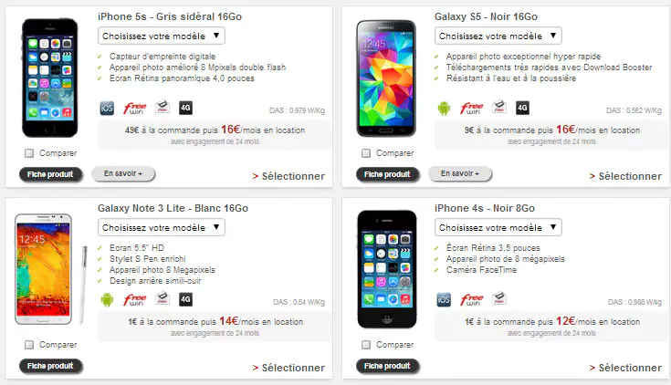 Désormais, il ne reste donc plus que 4 modèles proposés à la location chez Free Mobile : l’iPhone 5s, le Galaxy S5, le Galaxy Note 3 Lite et l’iPhone 4s