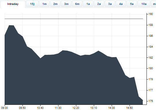 Ayant atteint au cours des trois derniers mois avec une valeur de l’action ayant atteint les 247 € le titre, ce dernier est tombé sous la barre des 175 € cet après midi.