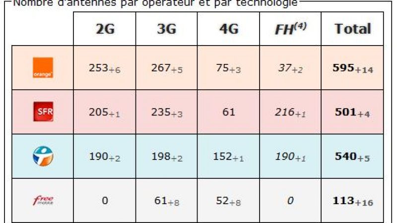 4) FH (faisceau hertzien) : Système de transmission entre les antennes relais. N’est jamais directement capté par un mobile. (chiffre non comptabilisé dans le total des antennes).