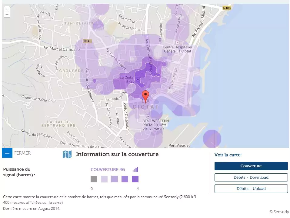 Avec les données de notre partenaire Sensorly Univers Freebox vous propose un focus sur La Ciotat 225ème ville de France par sa population et vous fait découvrir la carte de la couverture du réseau 4G et des débits.