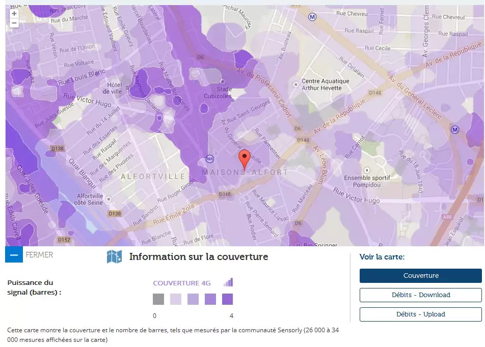 Avec les données de notre partenaire Sensorly Univers Freebox vous propose un focus sur Maison Alfort 104ème ville de France par sa population et vous fait découvrir la carte de la couverture du réseau 4G et des débits.