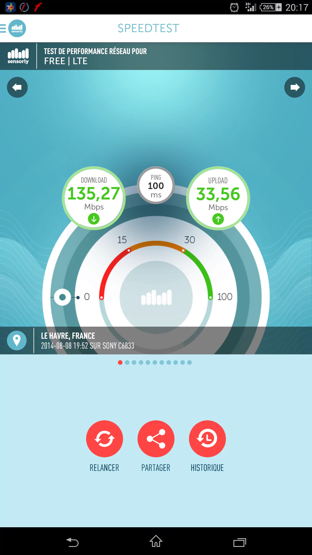 Vous êtes nombreux à nous envoyer les captures d’écran de vos tests de débit 4G. Afin de les faire partager avec les autres abonnés, nous les publierons donc dans les éditions régionales d’Univers Freebox. Voici donc le record d’un test de débit réalisé par un Freenaute au Havre.