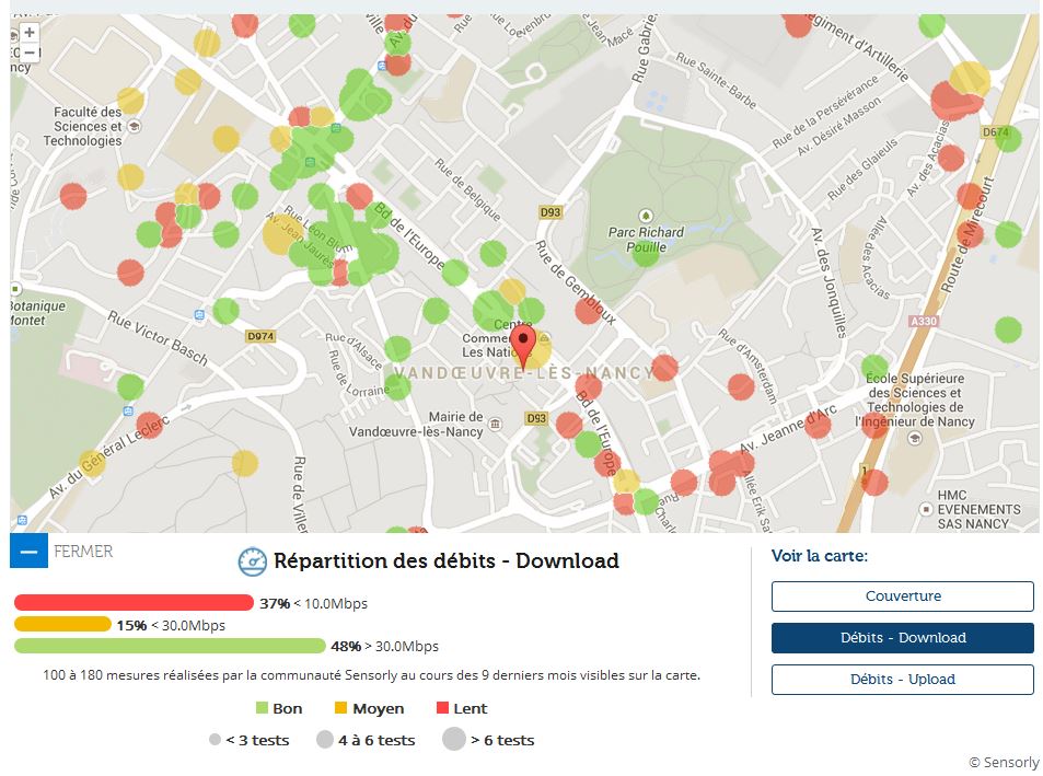Avec les données de notre partenaire Sensorly Univers Freebox vous propose un focus sur Vandoeuvre-les-Nancy 225ème ville de France par sa population et vous fait découvrir la carte de la couverture du réseau 4G et des débits.