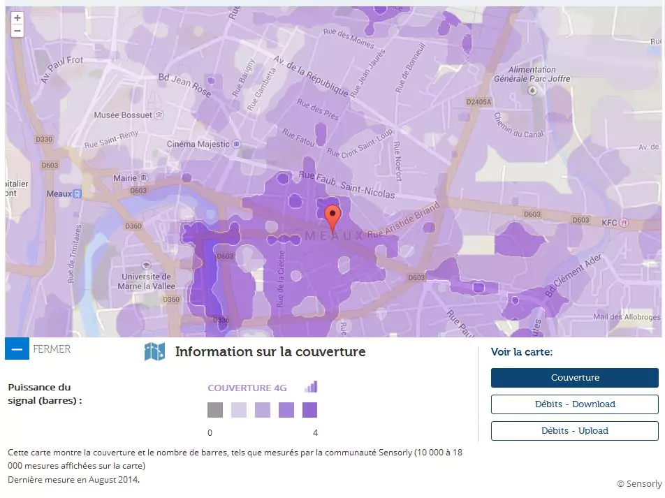 Avec les données de notre partenaire Sensorly Univers Freebox vous propose un focus sur Meaux 114ème ville de France par sa population et vous fait découvrir la carte de la couverture du réseau 4G et des débits.