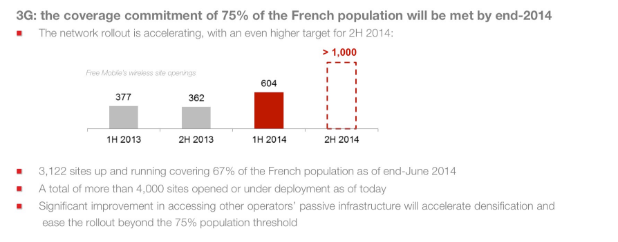 Du côté des déploiements d’antennes mobiles, ce sont plus de 1000 antennes supplémentaires qui sont promises par l’opérateur. Si, ce matin, Maxime Lombardini a reconnu qu’il était très difficile à l’heure actuelle de poser des antennes, le groupe en annonce 1000 pour la fin de l’année. A titre de comparaison au 1er semestre 2014, Free Mobile a déployé 604 antennes contre 362 pour le 2eme semestre 2013. C’est une véritable accélération des déploiements qui est ainsi promise par l’opérateur.