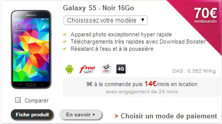 Boutique Free Mobile : 70 € remboursés sur le Samsung Galaxy S5