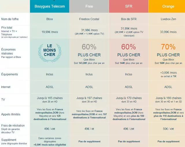 De ce fait, Bouygues Télécom, dans son comparatif, peut s’auto attribuer les lauriers de l’offre la moins chère.