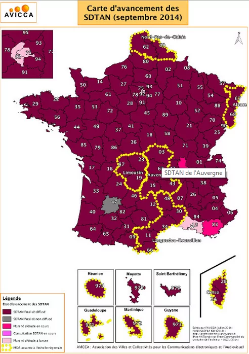 En cette rentrée, ils sont désormais 97 départements métropolitains et collectivités d’Oute-Mer a avoir validé leur SDTAN (Schéma Directeur Territorial d’Amenagement Numérique). Ces projets permettent à ces collectivités départementales (75) ou régionale (7 pour 21 départements concernés), d’anticiper le déploiement des réseaux très haut débit sur plusieurs années et d’être éligibiles à des financements publics.