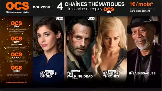 Films en première exclusivité séries inédites, magazines consacrés au cinéma et aux séries, mais aussi des programmations thématiques originales, des documentaires, des courts métrages. Les plus grandes sagas du cinéma et des séries : Thor : le monde des ténèbres, Insaisissables, Game of Thrones, Boardwalk Empire, The Walking Dead, Masters of Sex, The Knick, Girls…