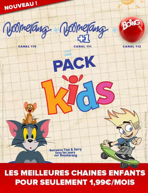 Free vient d’annoncer le lancement d’un pack kids. Commercialisé au tarif de 1,99 euros/mois, il intègre 3 chaînes enfants :