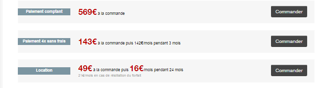 En revanche la bonne surprise de vient de l’iPhone 5S 16 Go . Le mobile est accessible à la location , mais peut également être payé "comptant" ou en 4 fois sans frais. Son prix jusque là affiché chez Free Mobile était de 665 €. Ce dernier est tombé cette semaine à 609 € sur l’Apple Store. Free Mobile en rajoute donc une couche en le proposant désormais à 569 €, soit 50 € de moins que sur l’Apple Store.