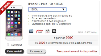 Comme l’année passée avec l’iPhone 5S et l’année d’avant avec l’iPhone 5C, certains terminaux Apple, à peine proposée à la vente sont déjà temporairement indisponibles. L’histoire se répête et les terminaux Apple vont très vite tomber en pénurie.