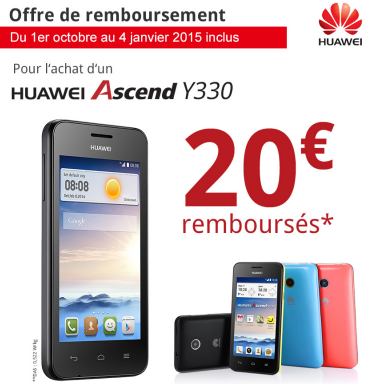 Du côté des offres de remboursement, une petite nouveauté est apparue concernant un des terminaux les moins chers vendus sur la plateforme. Elle concerne le Huawei Y330 et permet en cas de renvoi du coupon de remboursement de faire baisser le prix de 20 €. le prix d’achat du terminal peut donc passer de 59 € à 39 €. Vous trouverez le coupon de remboursement sur la plateforme Free Mobile ou en cliquant sur ce lien.