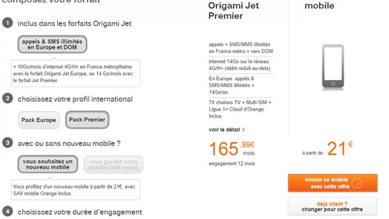 Cette dernière est également réévaluée et peut atteindre jusqu’à 14 Go d’internet en Europe dans le forfait Origami Jet avec appels et SMS/MMS Illimités ainsi qu’un nouveau mobile et un engagement de 12 mois pour 165,99 €/mois.