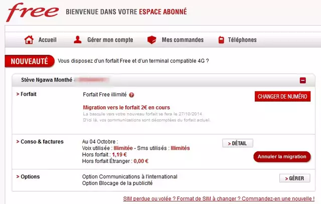Free Mobile vient d’ajouter une petite nouveauté sur l’espace abonné, qui peut s’avérer utile. Désormais, lors d’une migration d’abonnement, il est possible d’annuler cette dernière, avant que la migration soit effectuée. Cela permet donc de ne pas être facturé 10€ lors de la migration du forfait illimité vers le forfait 2€, si l’on se rend finalement compte qu’on ne souhaite plus migrer.